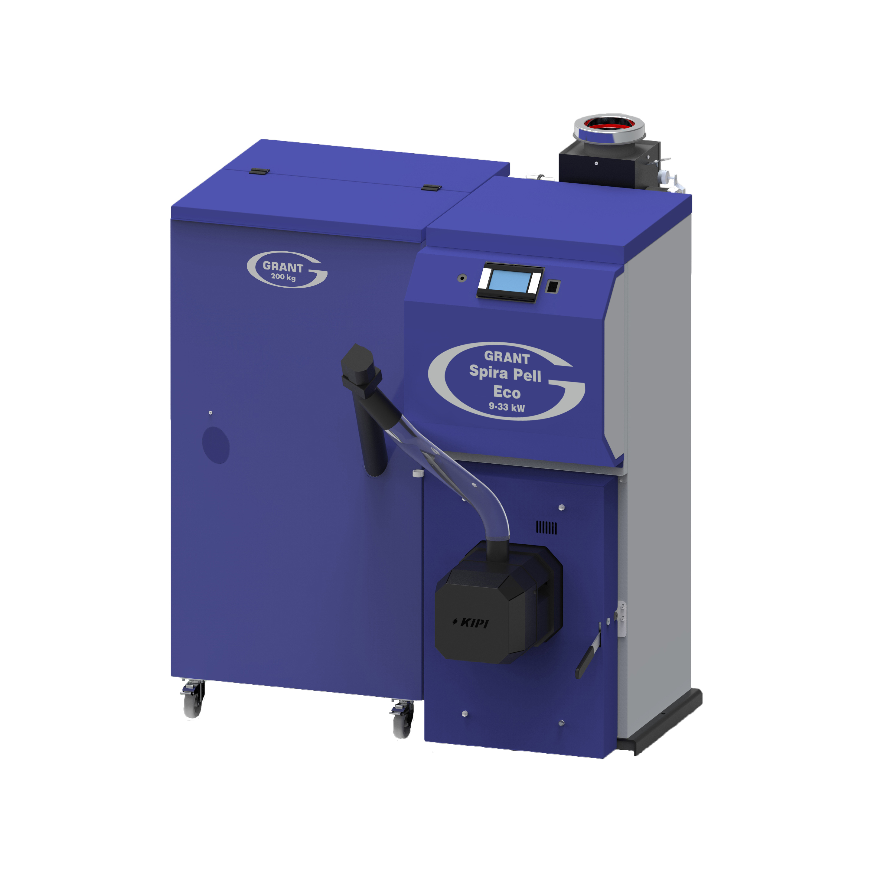 Grace aux systèmes brevetés d'auto-nettoyage des Spira Pell Eco et du brûleur inox Grant by Kipi, le contrôle de la chaudière par l'utilisateur consiste simplement à vider le tiroir à cendres régulièrement et à vérifier la présence de granulés dans la trémie. Cette dernière est mobile (montée sur roulettes) pour la déplacer au plus près du stockage de granulés. Toutes nos chaudières ont la possibilité de recevoir un système d'aspiration en option pour raccorder un silo à granulés de grande capacité.